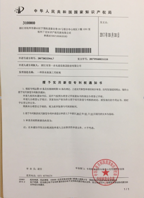 ½üÈÕ£¬BOB°ëµºÒ»ÆÚΧ¿Ñ¹¤³Ì±±Æ¬Ê©¹¤¢ó±êÏîÄ¿²¿ÊÕµ½¹ú¼Ò֪ʶ²úȨ¾ÖÊÚÓèʵÓÃÐÂÐÍרÀûȨµÄ֪ͨÊ飬ÓɸñêÏîÄ¿²¿Ñз¢µÄ¡¶Ò»ÖÖŤÍõ×Ö¿éÄ£°å¡·ºÍ¡¶Ò»ÖÖÅÅË®°åÊ©¹¤µÄ׮ѥ¡·»ñµÃʵÓÃÐÂÐÍרÀû¡£