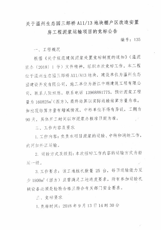 ¹ØÓÚÎÂÖÝÉú̬԰ÈýÀÉÇÅA11/13µØ¿éÅï»§Çø¸ïа²¶Ù·¿¹¤³ÌÄཬÔËÊäÏîÄ¿µÄ¾º±êͨ¸æ