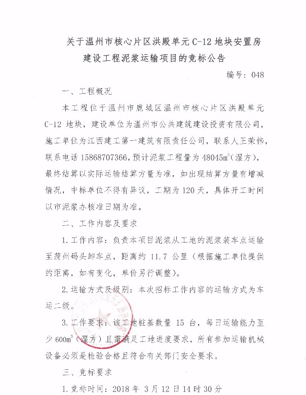 ¹ØÓÚÎÂÖÝÊн¹µãÆ¬Çøºéµîµ¥Î»C-12µØ¿é°²¶Ù·¿½¨É蹤³ÌÄཬÔËÊäÏîÄ¿µÄ¾º±êͨ¸æ