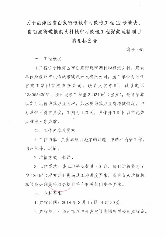 ¹ØÓÚ걺£ÇøÄϰ×Ïó½ÖµÀ³ÇÖдå¸ïй¤³Ì12ºÅµØ¿é¡¢Äϰ×Ïó½ÖµÀºá¸ÛÍ·´å³ÇÖдå¸ïй¤³ÌÄཬÔËÊäÏîÄ¿µÄ¾º±ê¹«Ê¾