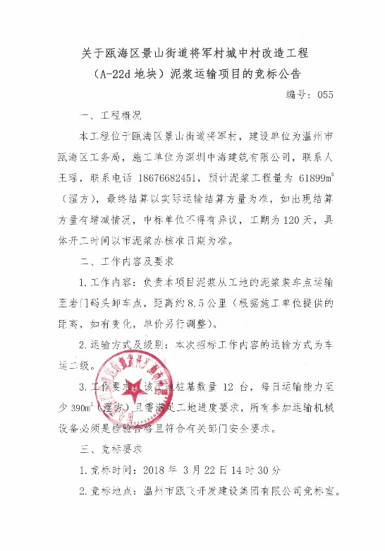 ¹ØÓÚ걺£Çø¾°É½½ÖµÀ½«¾ü´å³ÇÖдå¸ïй¤³Ì£¨A-22dµØ¿é£©ÄཬÔËÊäÏîÄ¿µÄ¾º±êͨ¸æ