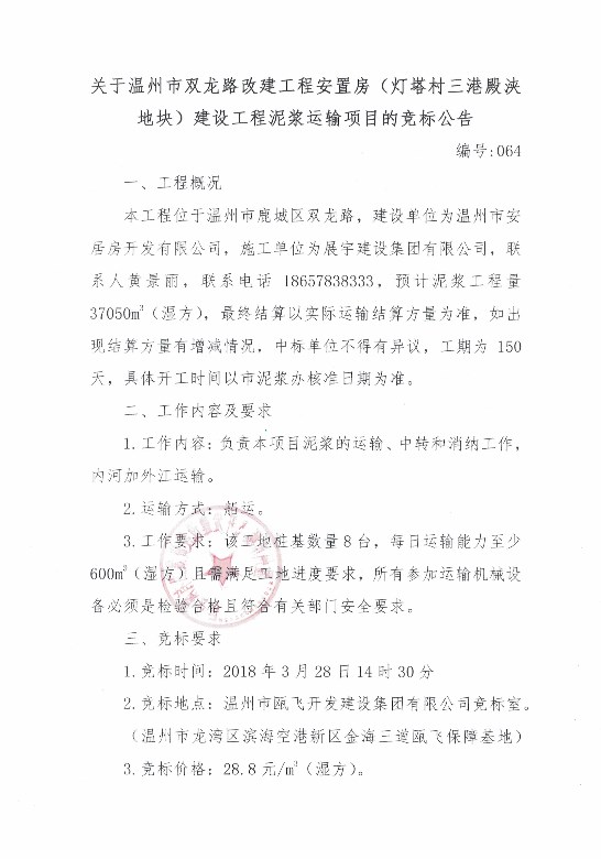 ¹ØÓÚÎÂÖÝÊÐË«Áú·¸Ä½¨¹¤³Ì°²¶Ù·¿£¨µÆËþ´åÈý¸Ûµî䤵ؿ飩½¨É蹤³ÌÄཬÔËÊäÏîÄ¿µÄ¾º±êͨ¸æ