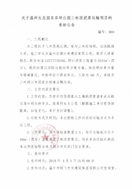 ¹ØÓÚÎÂÖÝÉú̬¶«ˆ”¹«Ô°Èý±ê¶ÎÄཬÔËÊäÏîÄ¿µÄ¾º±êͨ¸æ