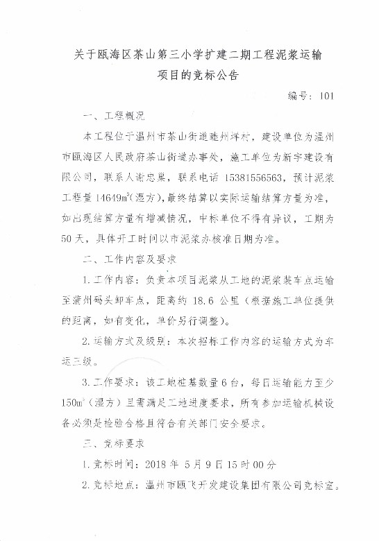 ¹ØÓÚ걺£Çø²èɽµÚÈýСѧÀ©½¨¶þÆÚ¹¤³ÌÄཬÔËÊäÏîÄ¿µÄ¾º±êͨ¸æ