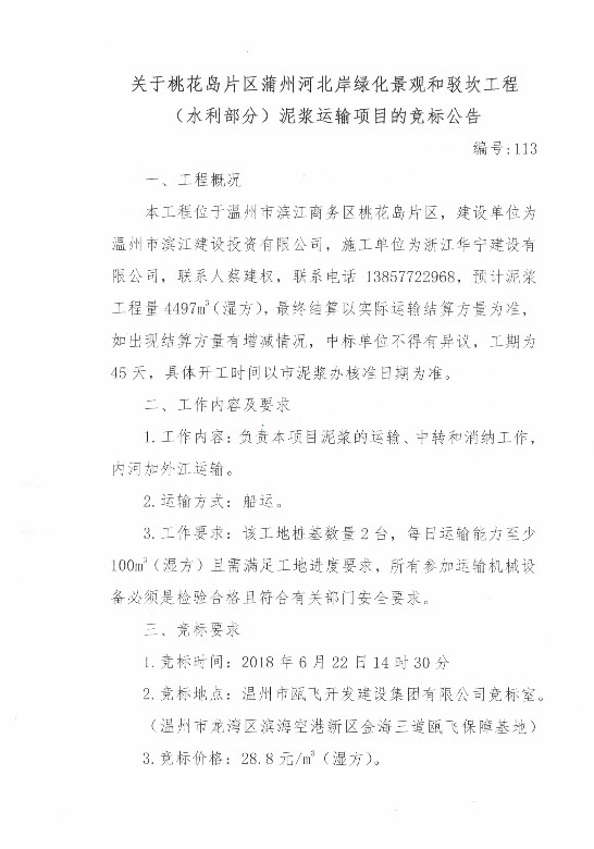¹ØÓÚÎÂÖݾ¼Ã¼¼Êõ¿ª·¢Çø»ª¶«»úÐµÖÆÔìÓÐÏÞ¹«Ë¾½¨É蹤³ÌÄཬÔËÊäÏîÄ¿µÄ¾º±êͨ¸æ