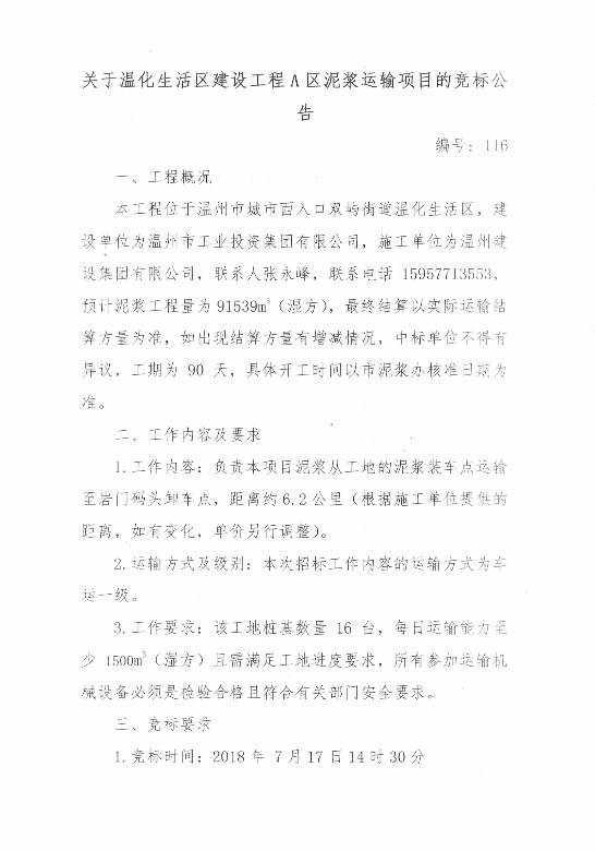 ¹ØÓÚÎÂÖÝÒÁ˹ÀûЬҵÓÐÏÞ¹«Ë¾³§·¿²ðǨ°²¶ÙÏîÄ¿ÄཬÔËÊäÏîÄ¿µÄ¾º±êͨ¸æ