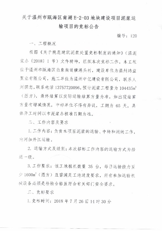 ¹ØÓÚÎÂÖÝÊÐ걺£ÇøÖÐÐĵ¥Î»E-10¡¢E-16µØ¿éÏîÄ¿ÄཬÔËÊäÏîÄ¿µÄ¾º±êͨ¸æ